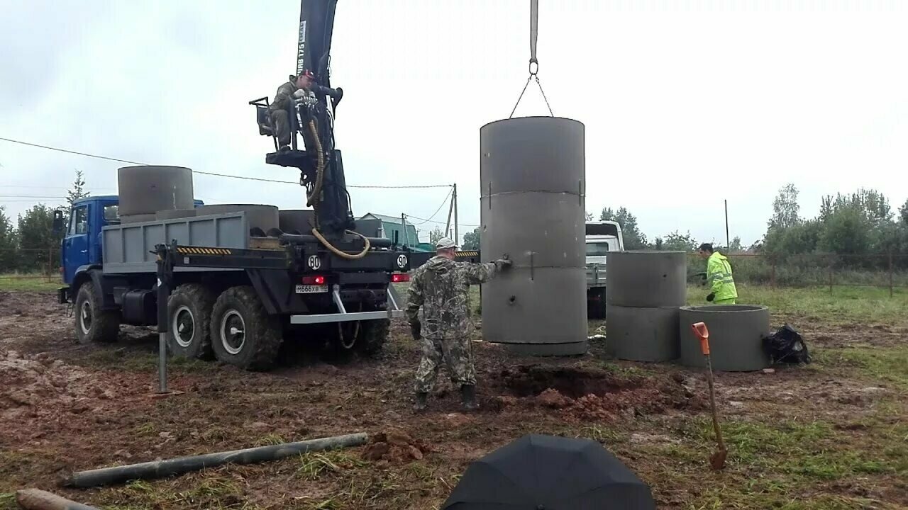 Доставляем на участок буровую технику, бетонные кольца, инструмент. Выбираем оптимальное расположение колодца: